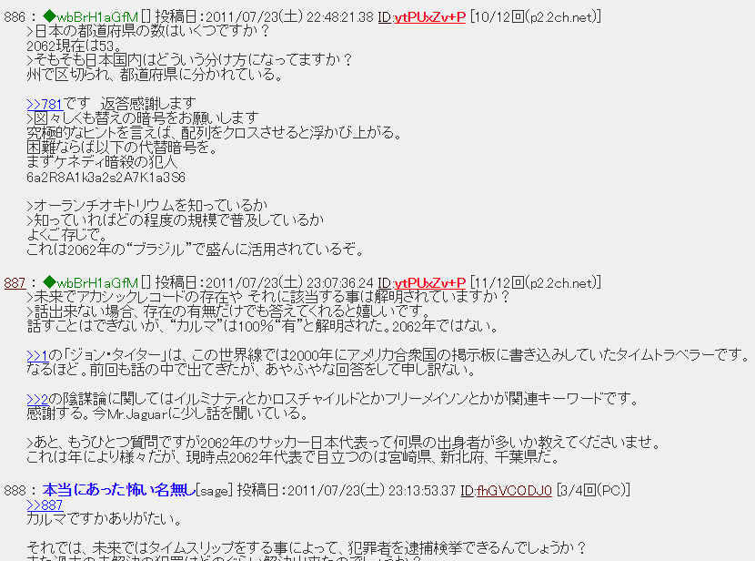 2062年から来た男は過去に何度か暗号を残し去っている。