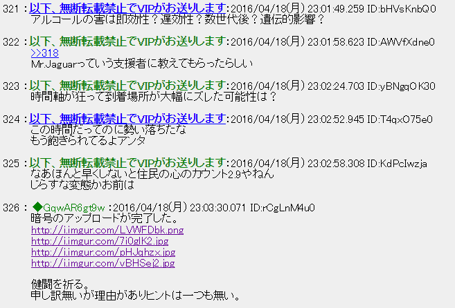 第六メッセージ 投稿日:2016/04/18(月) 23:03:30