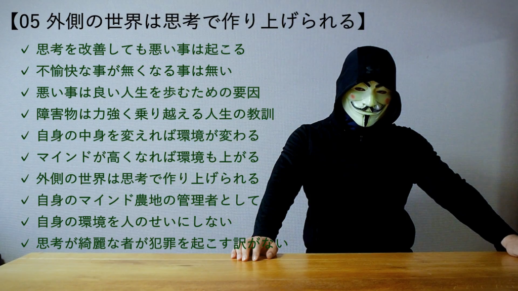 さあ、「魔法の法則」に従って、考え、行動し始めましょう。願いを叶える機会を待っていてはいけません。あなたのために存在している神が、あなたにチャンスを運ぶのを心待ちにしているのです。この宇宙の中で、前向きに生きようとしている人間にチャンスが訪れない、ということはありません。「魔法の法則」に従い、思考し、行動すれば誰でも必ず願いが叶うのです。どうか、今、学生のアルバイトであっても、サラリーマンであっても、OLであっても、主婦であっても、この動画を注意深く学んで、自信を持って行動してください。あなたの願いは必ず叶います。