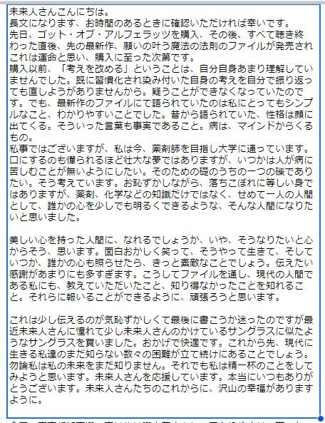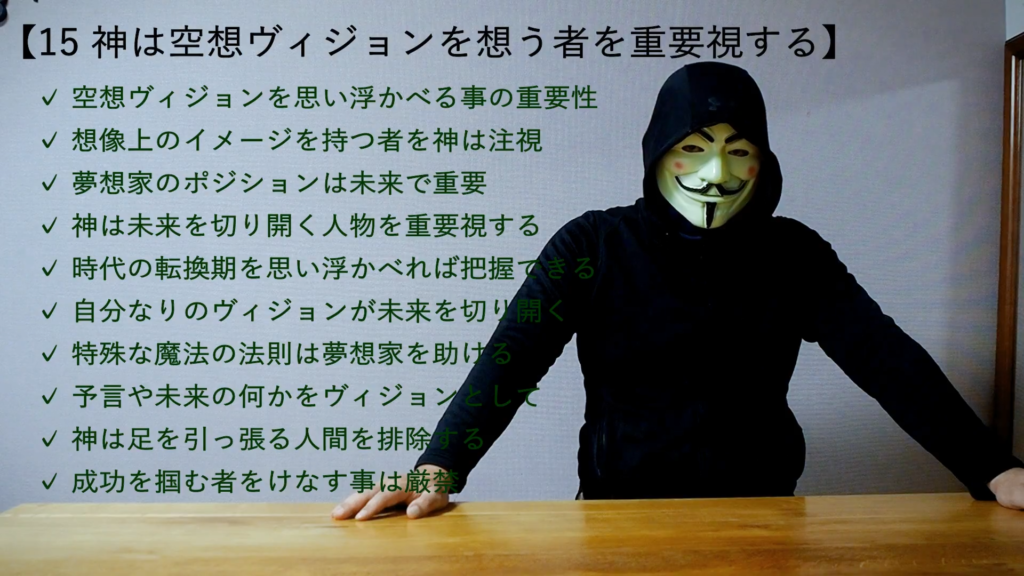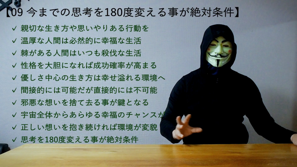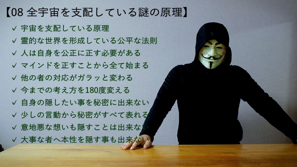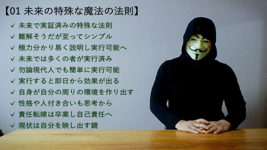 この動画を作るにあたり、私は分かりやすく優しく説明するよう努めました。なぜならば、すべての先輩方に理解していただきたいからです。ここで説明している法則は、未来で十分に検証され、実際に試されました。そして、実際に効果があるという結果が出ています。もしここで説明している「魔法の法則」を実践して願いを叶えたいと思うのであれば、ぜひこの動画で説明している通りに実行してください。